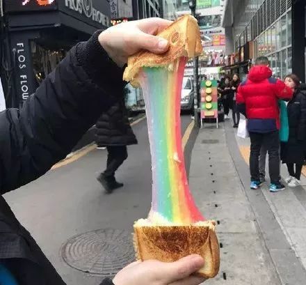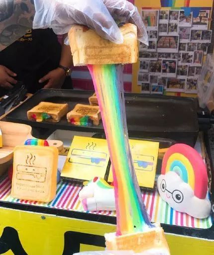 但其实,彩虹起司吐司源自于泰国,是由一家Happy Cheese Toast研发出来的。它主打的就是拉丝都不会断的Cheese Toas。有许多吃货朋友特地飞去泰国寻觅Rainbow Cheese Toast。