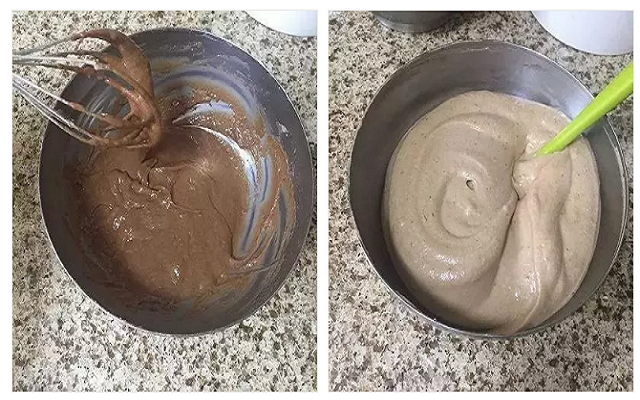 1、蛋黄打散加入玉米油乳化均匀,加入牛奶拌匀。再筛入混合好的可可粉、低粉和盐,画Z字混合均匀。