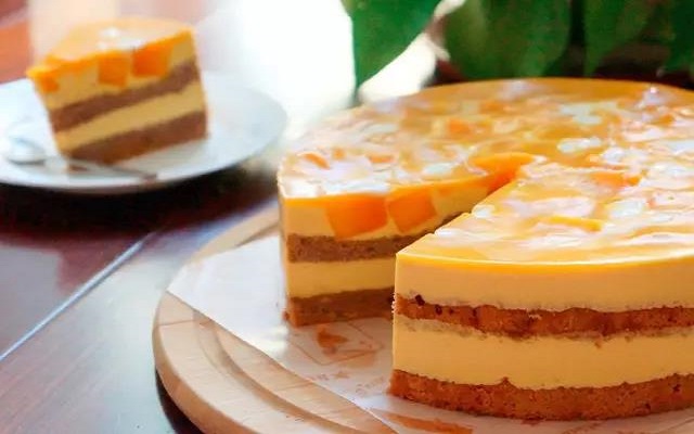 夏天里需要清爽的感觉。不用烤箱的芒果慕斯蛋糕,慕斯的冰凉口感配上芒果的酸酸甜甜,一键清爽你的一整个夏天。